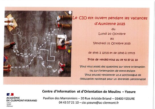CIO - OUVERTURE PENDANT LES VACANCES D'AUTOMNE 2025 du lundi 20 octobre au vendredi 31 octobre