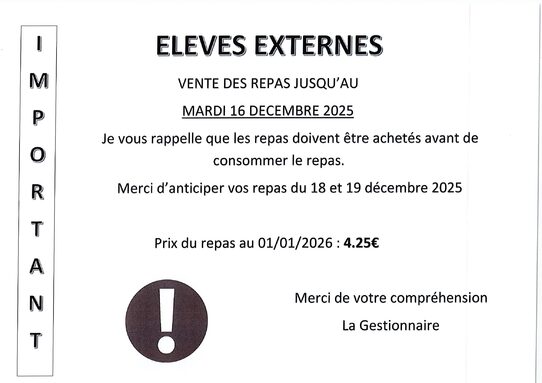 INFORMATION IMPORTANTE POUR LES ELEVES EXTERNES