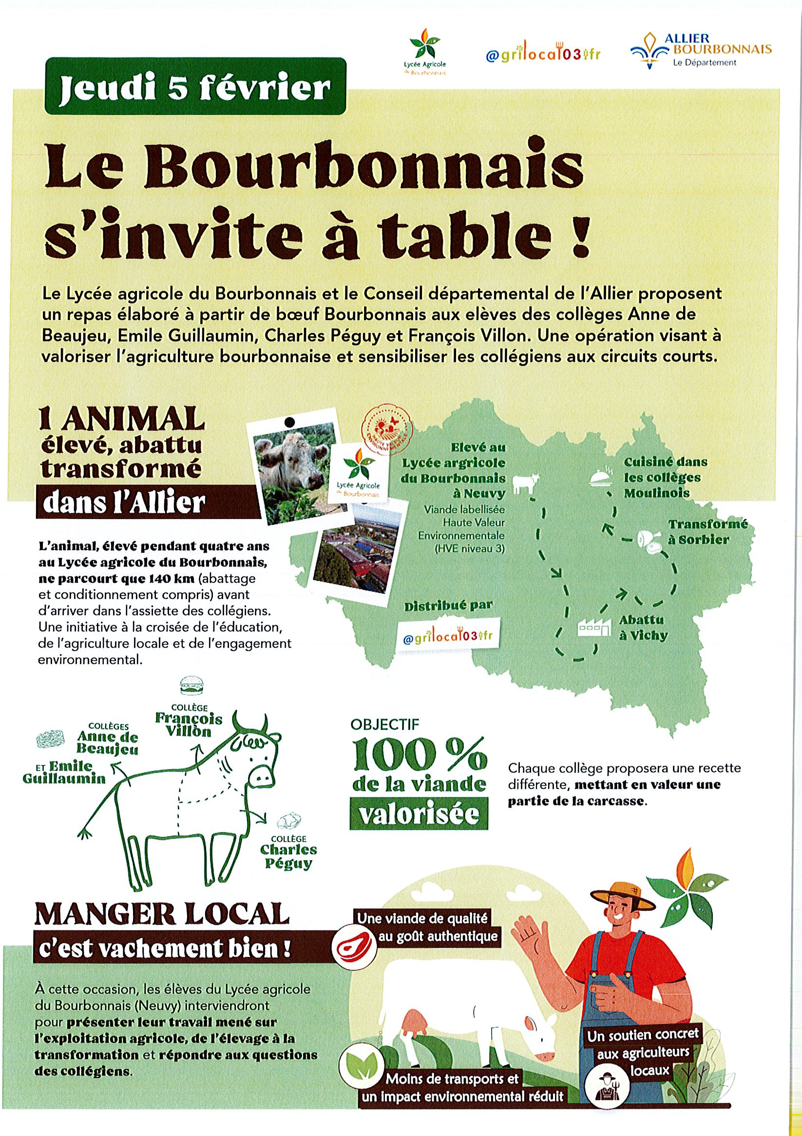 LE JEUDI 5 FEVRIER : OPERATION "Le Bourbonnais s'invite à table !" dans les collèges